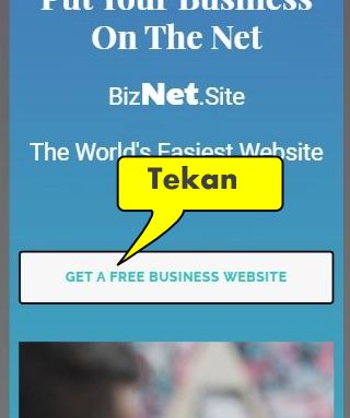 Di website BizNet.Site, sila tekan butang GET A FREE BUSINESS WEBSITE seperti yang digambarkan di sebelah.
