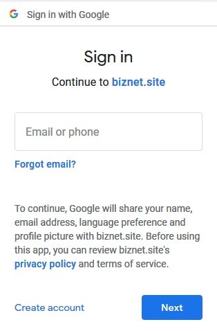 Perlu ditekankan pada ketika ini anda sedangan berinteraksi dengan perkhidmatan Google. Sebarang password yang anda taipkan tidak akan dikongsi oleh Google dengan BizNet. Jadi maklumat password anda adalah selamat.